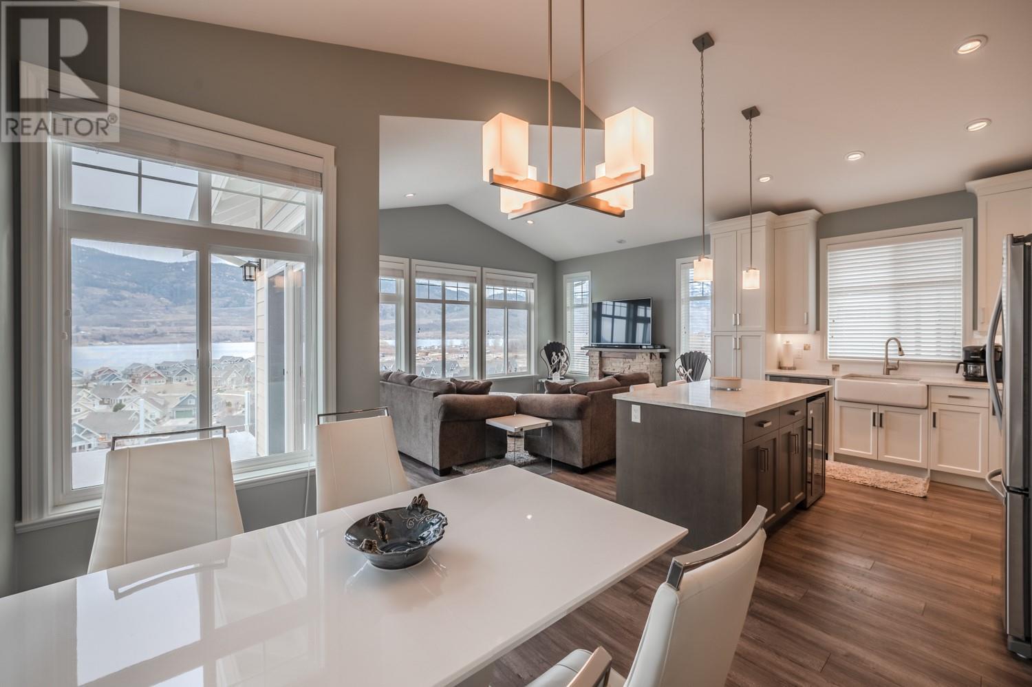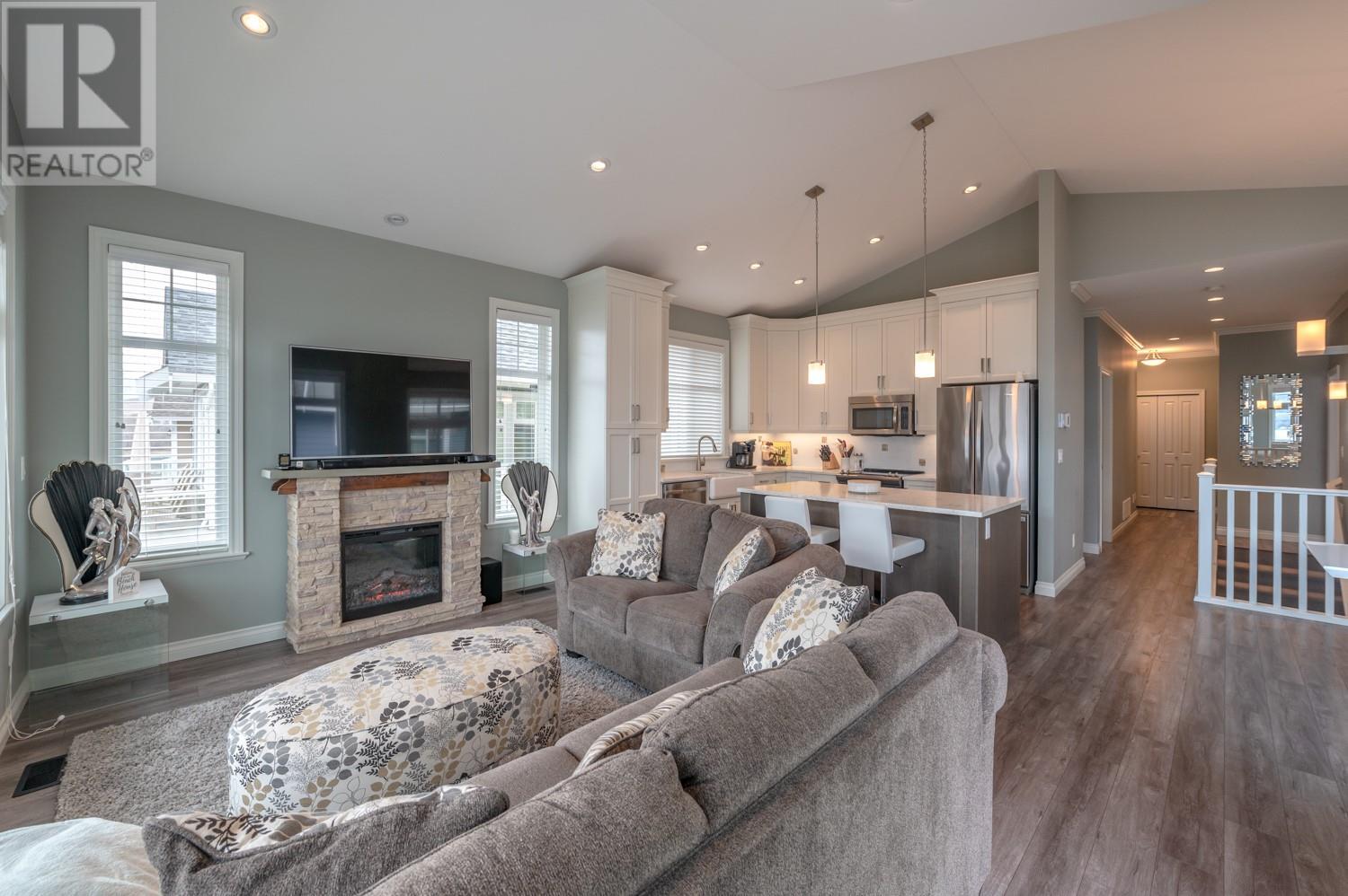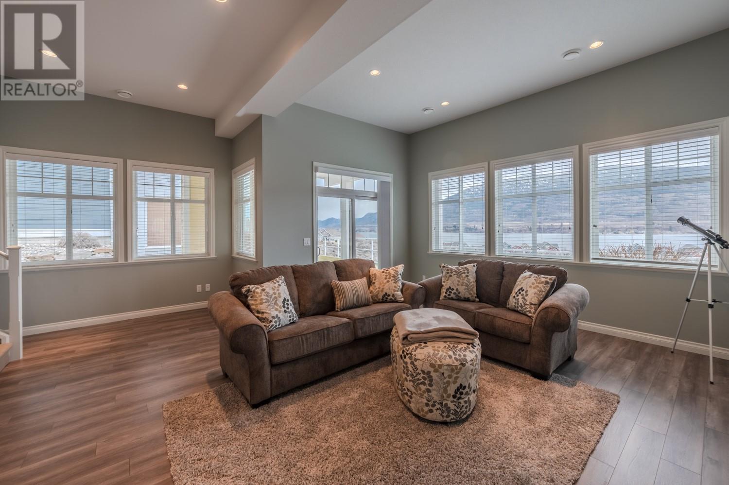 Welcome to your dream retreat at the Cottages on the Lake! This meticulously cared-for property boasts one of the BEST VIEWS of the lake, ensuring every moment is filled with awe-inspiring beauty. With original owners who've never rented out, this home exudes a sense of pristine perfection with upgrades chosen to maximize view and sunlight. 11ft ceilings in the extended basement, complemented by a spacious concrete patio below; The kitchen is a culinary haven with its white modern tall farmhouse cabinets, complete with a farm sink and quartz countertops, wine fridge, crown molding, and a double vaulted living room, creating a stunning entertaining space. Retreat to the Master Ensuite with a frameless glass walk-in shower and a jetted tub, promising ultimate relaxation after a day of lakeside adventures. The extended garage offers ample space for all your toys, equipped with hot and cold water for added convenience. This property comes furnished, with a BOAT SLIP and a newer GOLF CART, ensuring endless fun on the lake. Don't miss your chance to own this slice of paradise at Osoyoos Lake. Indulge in luxury, tranquility, and breathtaking views. Enjoy the convenience of no GST or PTT on this purchase, and the flexibility of allowing rentals for 5 days or longer. (id:4069)