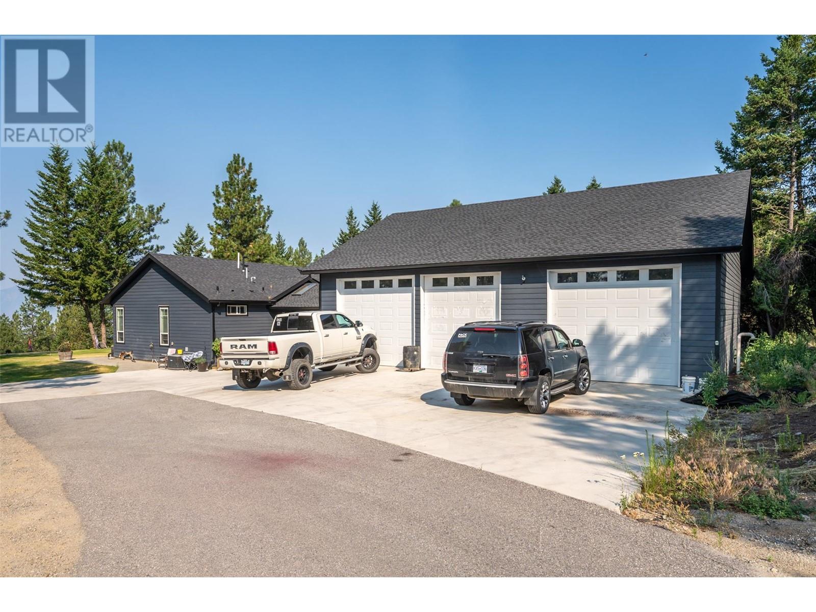 No restriction area for FOREIGN INVESTORS!!Nestled atop the scenic heights of Anarchist Mountain, this exquisite 3-bedroom, 3-bathroom rancher offers a rare blend of luxury, privacy, and natural beauty. Set on over 5.6 acres of pristine landscape, the home invites you into a retreat-like atmosphere, where floor-to-ceiling windows in the living room frame breathtaking panoramic views of the lake and surrounding mountains—changing beautifully with the seasons. Thoughtfully designed with a spacious, open-concept layout, the interior features a modern gourmet kitchen, ample storage, and a seamless flow into the dining and living areas. The master suite is a peaceful haven with its own en-suite and tranquil views, while two additional bedrooms offer comfort and space for family or guests. For car lovers and hobbyists alike, the fully insulated, oversized triple-door garage/shop (40–46 feet) is a standout feature, complete with in-floor heating for year-round comfort—ideal for working on projects or protecting vehicles in all seasons. Step outside onto the expansive deck to fully immerse yourself in the serenity of nature. Whether you’re looking for a full-time residence or a mountain escape, this property delivers peace, space, and unparalleled vistas. Don’t miss your chance to experience the magic of Anarchist Mountain—schedule your private showing today (id:4069)