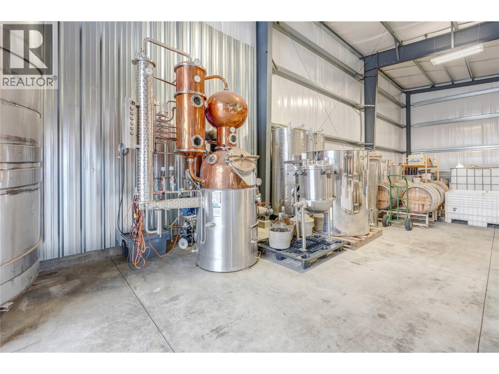 Nestled on 5.53 acres, this prime vineyard property offers a unique opportunity for wine enthusiasts, entrepreneurs, or those with a passion for crafting artisanal beverages. With 4 acres of established vines, including Pinot Noir, Riesling, Pinot Gris, and Gewurztraminer this property is designed for those ready to take their winemaking, distilling, or cider-making ventures to the next level. The stunning industrial-style processing facility boasts 16’ clear-span ceilings and a versatile layout, ideal for winemaking, vinegar production, distilling, or brewing. The building is equipped with large exterior overhangs and a plumbed natural gas line (not yet hooked up), providing a solid foundation for future enhancements. Additionally, top of the line GAI bottling line and all necessary winemaking and distilling equipment (including Muller still) makes this an exceptional turn-key operation. Enjoy breathtaking valley and vineyard views from every corner of the property, and take in the tranquil atmosphere as you consider building your dream home or expanding your business. A rustic, charming country farm home and detached garage offers basic amenities while you plan your next steps. With zoning that allows for a winery, cidery, distillery, and more, the possibilities are endless. Whether you’re looking to build a thriving business or simply immerse yourself in a picturesque lifestyle, this vineyard property is ready for your vision. GST applicable. (id:4069)