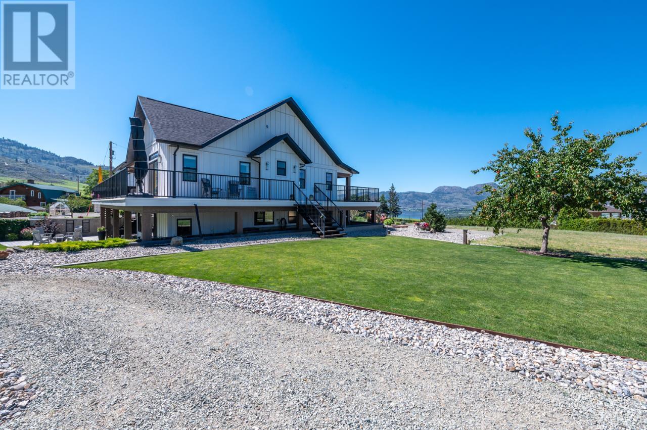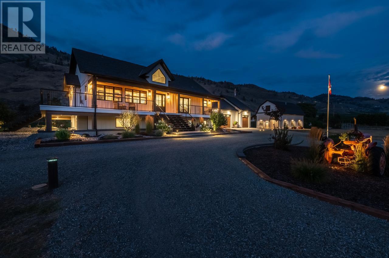 Perched just on the edge of town on Osoyoos’s coveted East Bench, this Modern Farmhouse estate isn’t just a home — it’s your dream lifestyle in the making. Spanning nearly 4.5 acres, with panoramic views of Osoyoos Lake and the sun-drenched South Okanagan hillsides, every moment here feels like a postcard. Wake up to the soft glow of sunrise over the vineyards and unwind each evening with a glass of wine as the lake reflects the colours of the setting sun from your wrap around porch. Inside, nearly 4,000 sq ft of beautifully crafted living space awaits. The heart of the home is a designer chef’s kitchen with premium appliances, an oversized island, and a walk-in pantry — perfect for entertaining or everyday luxury. The main floor also features a warm and inviting living area with gas fireplace, a spacious dining room, and a serene primary suite built for ultimate relaxation. The lower level delivers space and flexibility with three additional bedrooms, a large family/games room, and a multi-purpose flex space. Outside, the opportunities are endless — whether you're dreaming of a pool, a private vineyard, or wide-open space to enjoy nature. For the hobbyist or entrepreneur, a brand-new 44x30 heated shop with RV-height doors and high-amperage power offers serious function. There's also an attached 3-car garage, plenty of extra parking, and a fully irrigated, deer-fenced raised garden complete with potting shed. Come see it for yourself — showings by appointment. (id:4069)