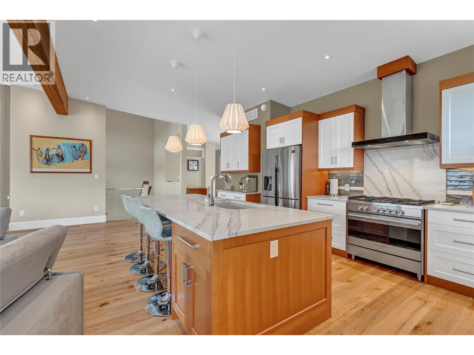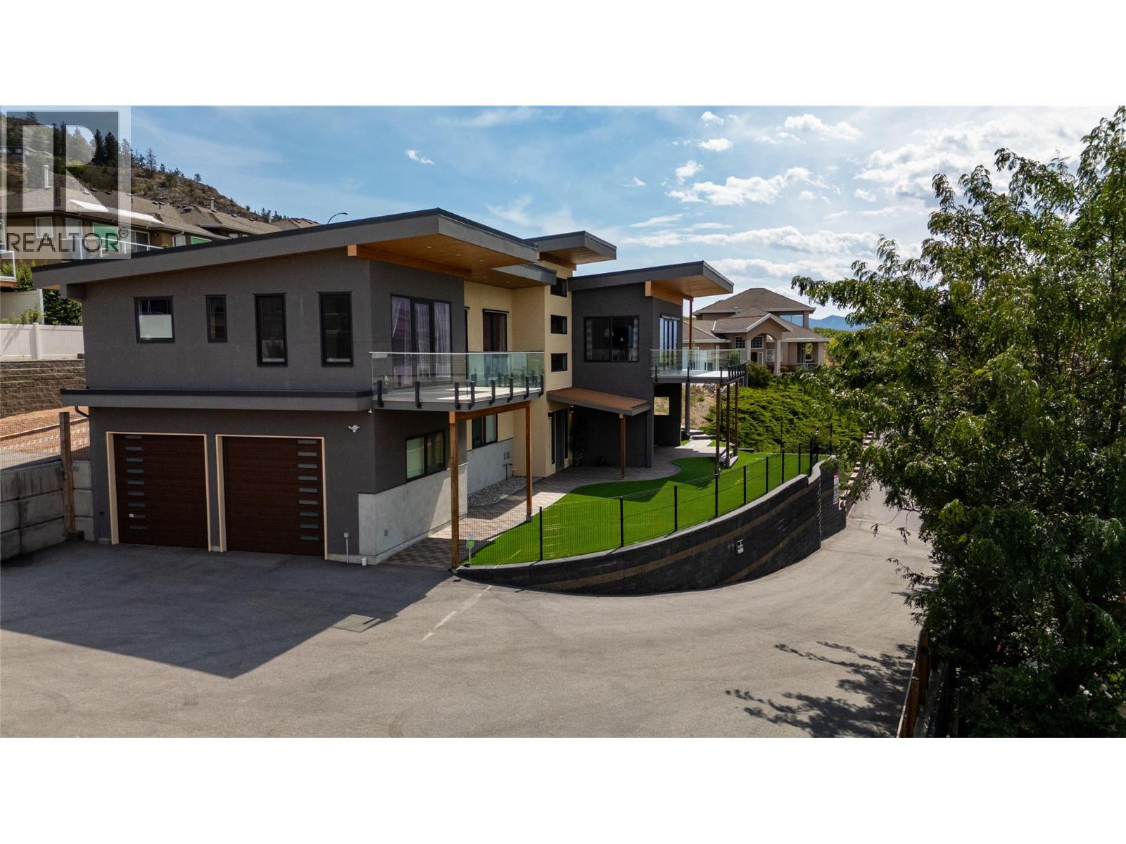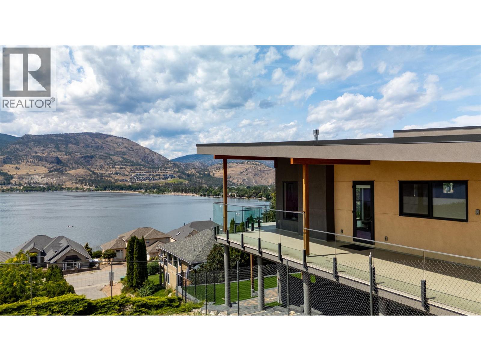 Perched high above the sparkling waters of Skaha Lake, this stunning 4-bedroom, 4.5-bathroom masterpiece offers over 3,000 sq ft of refined living space, built in 2018 with meticulous attention to detail. Designed to capture the essence of luxury Okanagan living, every angle of this home showcases unobstructed, sweeping west and south-facing views that will leave you breathless. A soaring entryway welcomes you, setting the tone for the open-concept design and contemporary sophistication that flows throughout. The main living area is an entertainer’s dream, featuring a wall of floor-to-ceiling windows and Euroline doors that flood the space with natural light while seamlessly blending indoor and outdoor living. Step out onto the expansive main balcony – the ultimate vantage point to watch the sun sink behind the hills and paint the lake with evening colours. The chef-inspired kitchen is as beautiful as it is functional, featuring high-end appliances, sleek cabinetry, and an oversized island perfect for hosting. Each of the bedrooms offers a private sanctuary, complete with its own ensuite bathroom for ultimate comfort and privacy. The primary suite is a true retreat – complete with its own private balcony, a lavish 5-piece ensuite featuring a deep soaker tub and a large shower. The home’s versatile design offers the potential for a self-contained main floor suite, ideal for guests, extended family, or as an income opportunity (id:4069)
