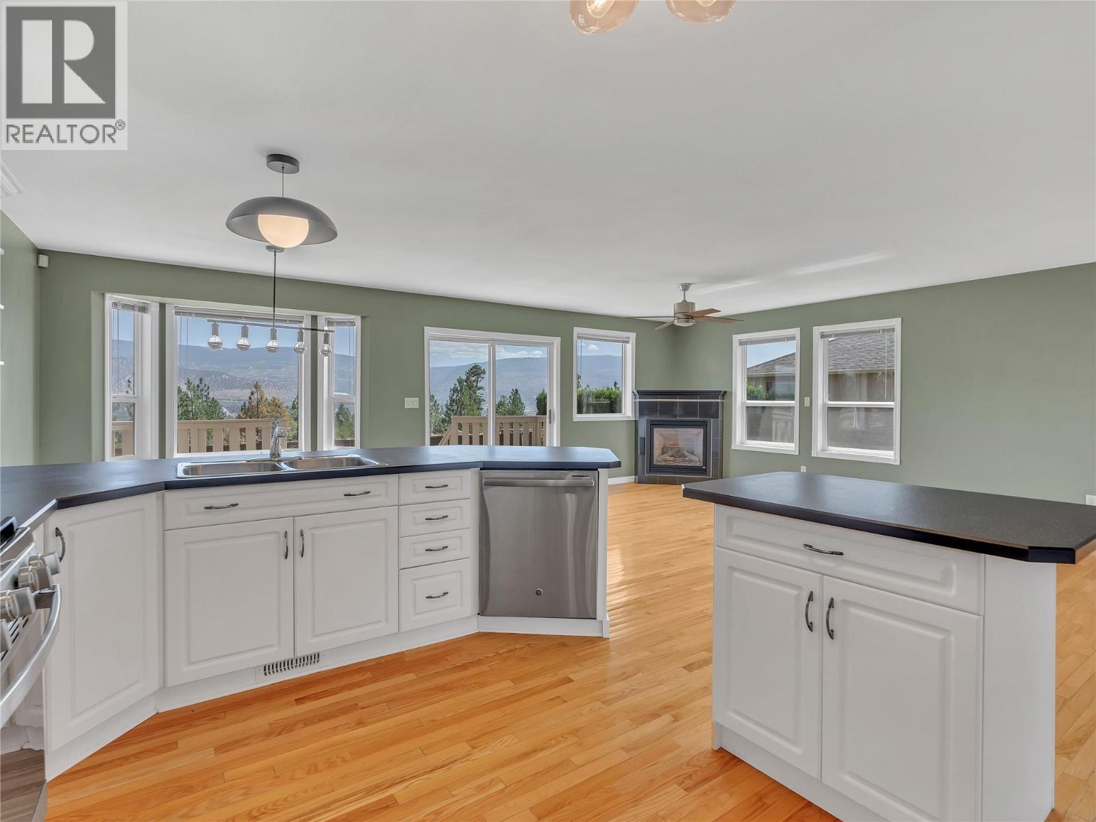 ENTERTAIN IN STYLE IN THIS ONE-LEVEL WALKOUT RANCHER. Set above the city in Penticton’s sought-after West Bench neighbourhood, this East-facing rancher offers panoramic views of Okanagan Lake, Munson Mountain, & the city skyline - your own private slice of paradise! This 3 bed, 2 bath home offers over $30K in recent upgrades & features a bright, open-concept floor plan with hardwood flooring throughout. The spacious living room with gas fireplace, dining area, & a large kitchen with gas stove all take full advantage of the stunning lake views. Step out onto the expansive deck - perfect for entertaining or soaking in the sun. Then wander into the beautifully landscaped, fully fenced backyard ideal for kids, pets, gardening, or simply relaxing – there are endless possibilities here! The comfortable family room adds extra space to unwind, while the generous primary suite features a 5pc ensuite & walk-in closet. Two additional bedrooms, a 4pc main bath, a large laundry room, & a double garage with high ceilings & mezzanine storage complete the package. Located in a quiet, family-friendly community just minutes from Okanagan Lake & downtown Penticton. Residents enjoy access to a large playground, outdoor hockey rink, & nearby trails for walking, biking, & exploring. Bonus No Speculation Tax here! Total sq.ft. calculations are based on the exterior dimensions of the building at each floor level & inc. all interior walls & must be verified by the buyer if deemed important. (id:4069)