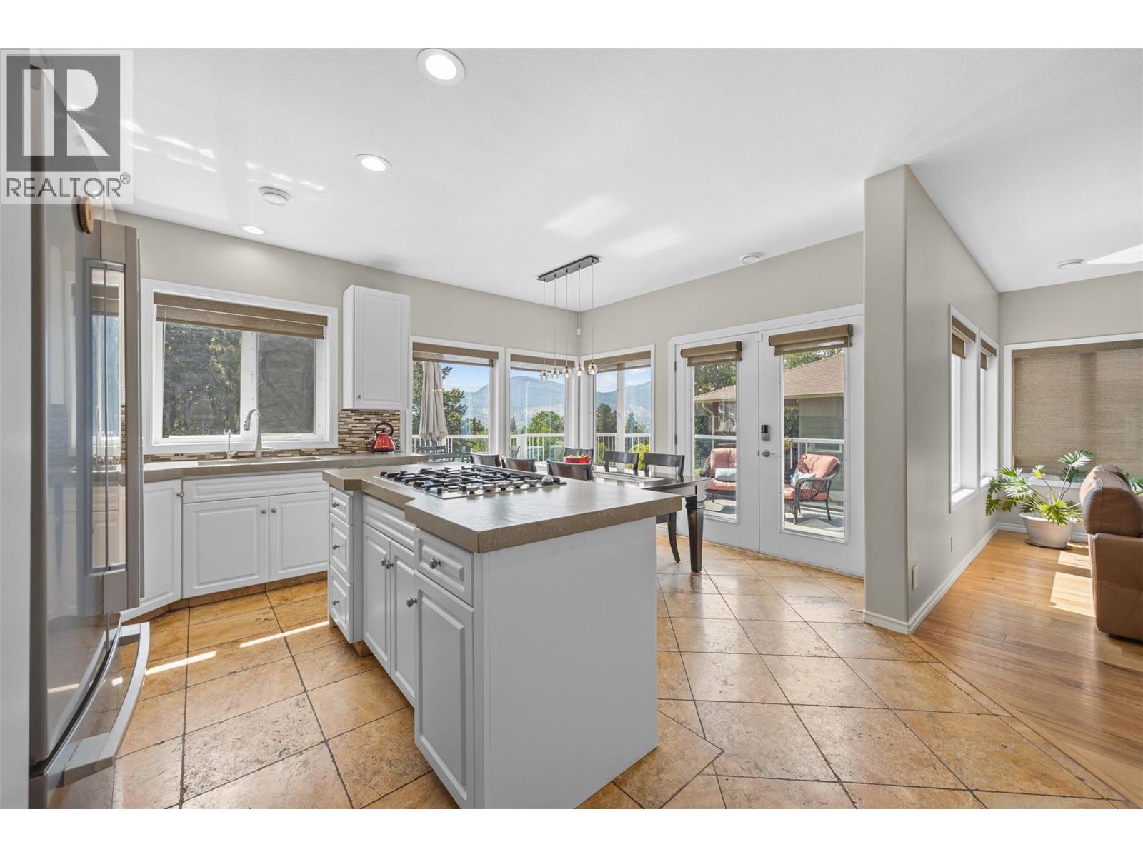 240 Heritage Boulevard is a multi-level 4,250 sq. ft. home, located 7 mins south of Penticton. The upper-level boasts of 3 bedrooms and 2 washrooms, and the primary bedroom is set up as an oasis, with its own private lakeview deck, large walk-in closet, and completely updated 5-piece ensuite. The main level features a double garage, laundry room, a front office, a formal living and dining room as well as a bright and spacious kitchen-den combo facing southeast with views of the lake and mountains. The lower level may be the most exciting part of the home. It boasts of a bright, self-contained two-bedroom BnB suite with a private patio, hot tub, and a second heated double garage 24’ x 29’, that can be used as a studio, gym or a work garage. There is ample parking with a second driveway on the south side, perfect for guests, family, RV parking, or rental income. The entire house has been updated with fresh paint throughout (walls, baseboards, doors), new door & cabinet hardware, brand-new carpet on staircases, a new roof, industrial hot water tank and new dishwasher (2024), new washer and dryer (2026) and upgraded lighting and landscaping. Other features include in-floor heating with solid hardwood & tile; two gas fireplaces and a 1 min walk Heritage Hills Park. (id:4069)