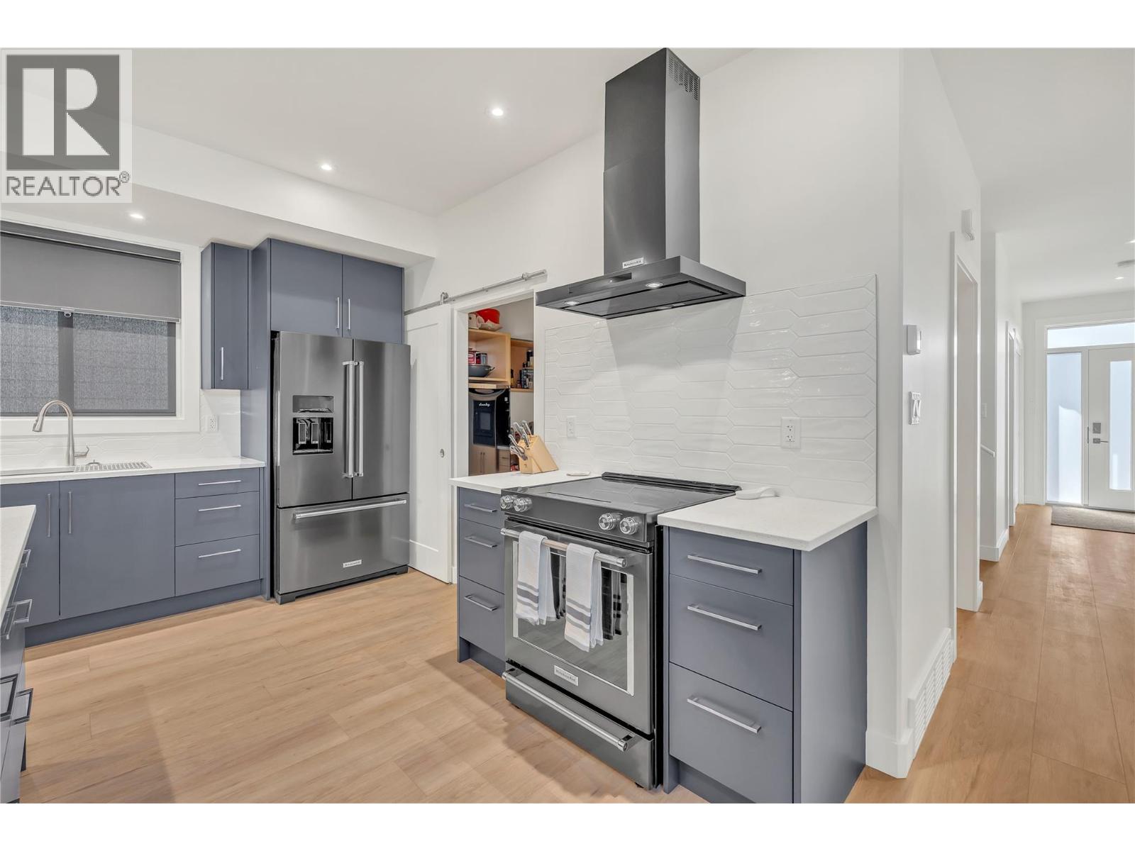 LEGAL SUITE. DOUBLE GARAGE. Priced significantly below BC Assessment. Steps to the KVR and just minutes to downtown Penticton—565 Forestbrook Drive delivers exceptional value and location. Built in 2023 by Brentview Developments, this modern home offers over 3,000 sq. ft. of thoughtfully designed living space with approximately 7 years remaining on the New Home Warranty. The open-concept main floor features a chef-inspired kitchen with quartz countertops and butler’s pantry, flowing into bright living space and a low maintenance outdoor area with gas BBQ hookup. Upstairs includes a spacious primary suite with spa inspired ensuite bath and large walk-in closet, two additional bedrooms, and convenient laundry. A fully self-contained legal one-bedroom suite above the garage provides excellent income or multi-generational potential— Enjoy the ease of walking or biking to shops, restaurants, breweries, beaches, markets, schools, and the hospital, all while living in an up and coming modern neighborhood. (id:4069)