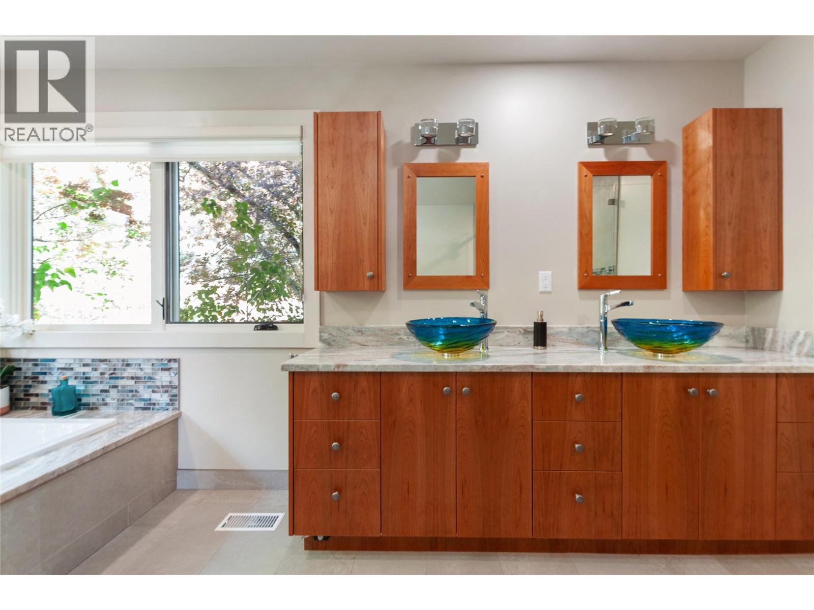CLICK TO VIEW VIDEO: This gorgeous 3,700+ sqft home offers 6 bedrooms & 7 bathrooms spread across 2 levels. On the main floor, you’ll find a spacious primary bedroom with a spa-like ensuite. And on the other end of the main floor, a secondary bedroom also with its own ensuite. On the lower level there are 4 additional bedrooms each with an ensuite and its own exterior entrance, giving you the opportunity to operate a very high-end bed & breakfast. The open concept living room has large sliding doors and a floor-to-ceiling brick fireplace which can be used for personal enjoyment or shared with guests. The kitchen on the main floor has recently been updated, and offers two tone quartz countertops, gorgeous modern sleek cabinetry, and a Miele stainless steel appliance package. After finishing your supper in the adjacent spacious dining room, you can choose to enjoy the gorgeous sunsets either from the exterior deck, the covered balcony, the poolside patio, or the sunset patio in the backyard. Many recent upgrades. New pool liner for a chlorine pool that could be converted to a salt pool. All the things like meditating under a tree, daydreaming next to the pool, or entertaining guests, will become your new favourite things to do. It's an excellent opportunity to take over an established business and enjoy everything this fantastic Okanagan luxury lifestyle has to offer, while living it! (id:4069)