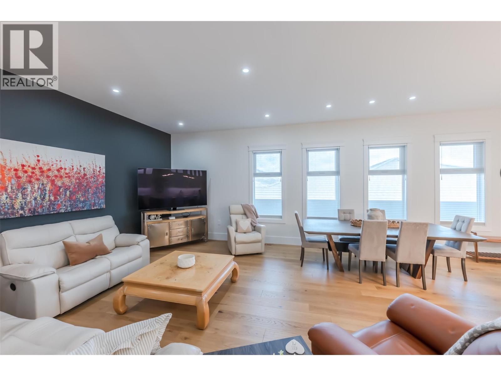 Custom-built with exceptional quality, this Augusta Lane home is perched on a 1/3 acre lot and offers over 5,500 sq.ft. of refined living—2,800 sq.ft. on the main and 2,700 sq.ft. below. Designed with unique styling and built to an uncompromising standard, this residence is priced well below replacement cost. Featuring an ICF foundation, Hardie siding, and concrete tile roof, with approx. 8 years of new home warranty remaining. Inside, 10-ft ceilings, 8-ft solid wood doors, and wide plank white oak flooring create a strong architectural presence. The chef’s kitchen delivers premium cabinetry, quartz counters and backsplash, a full butler’s pantry, Bosch appliances with double wall ovens, and a 5-element induction cooktop. The primary suite offers a custom walk-in closet with island and a spa-inspired ensuite with oversized tiled shower. Comfort and efficiency are elevated with natural gas on-demand hot water, standby generator, and full home water filtration, softener, and reverse osmosis. Outdoor living is anchored by a massive covered deck, gas BBQ hookups, hot tub, and pool-ready yard with underground irrigation. Parking and workspace are unmatched with an oversized double garage for full-size pickups plus a massive 2-bay approx. 1,300 sq.ft. commercial-grade shop with 16-ft ceilings, heating, A/C, and private bathroom. Complete with Hunter Douglas blinds, security, and holiday lighting. Just minutes to Osoyoos Golf Club and Osoyoos Lake. (id:4069)