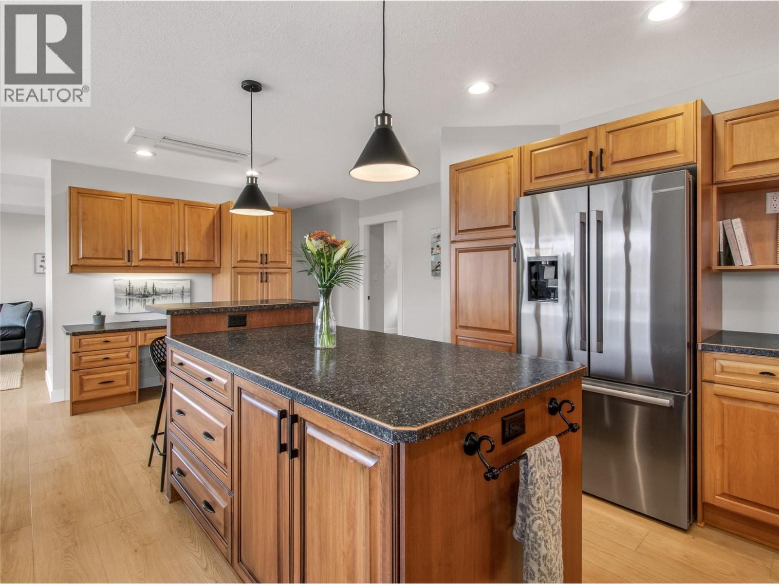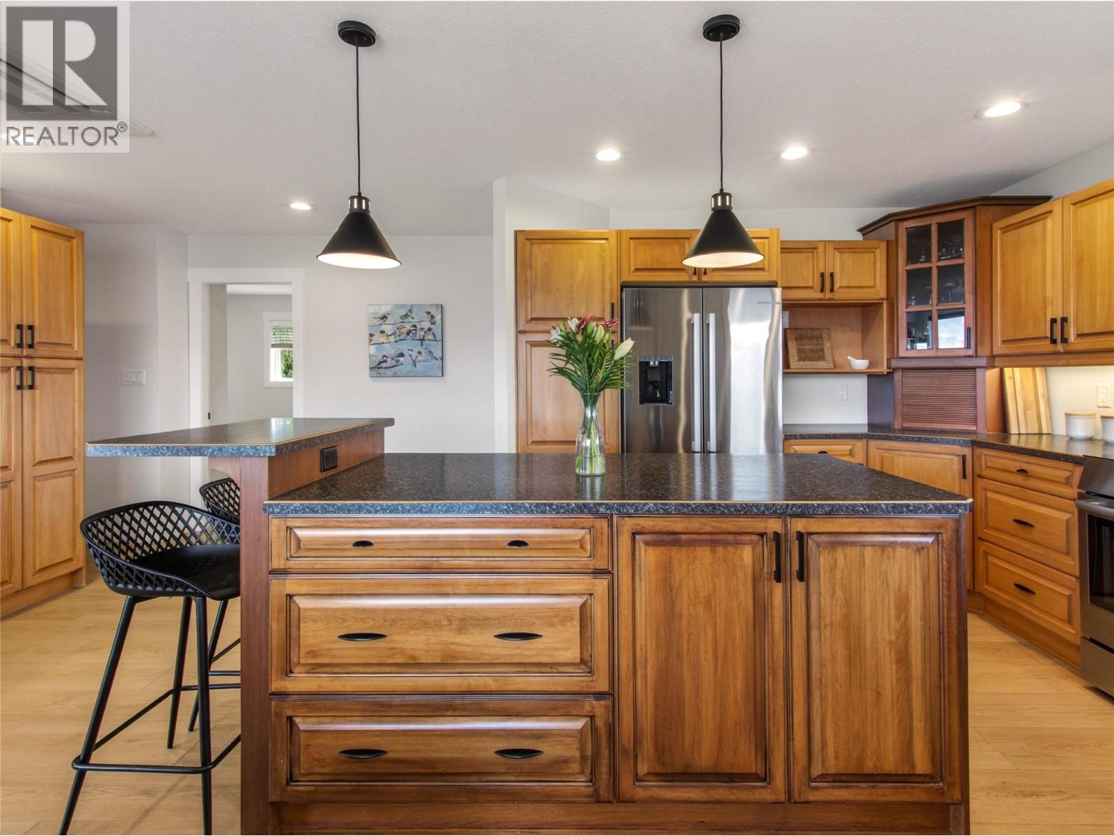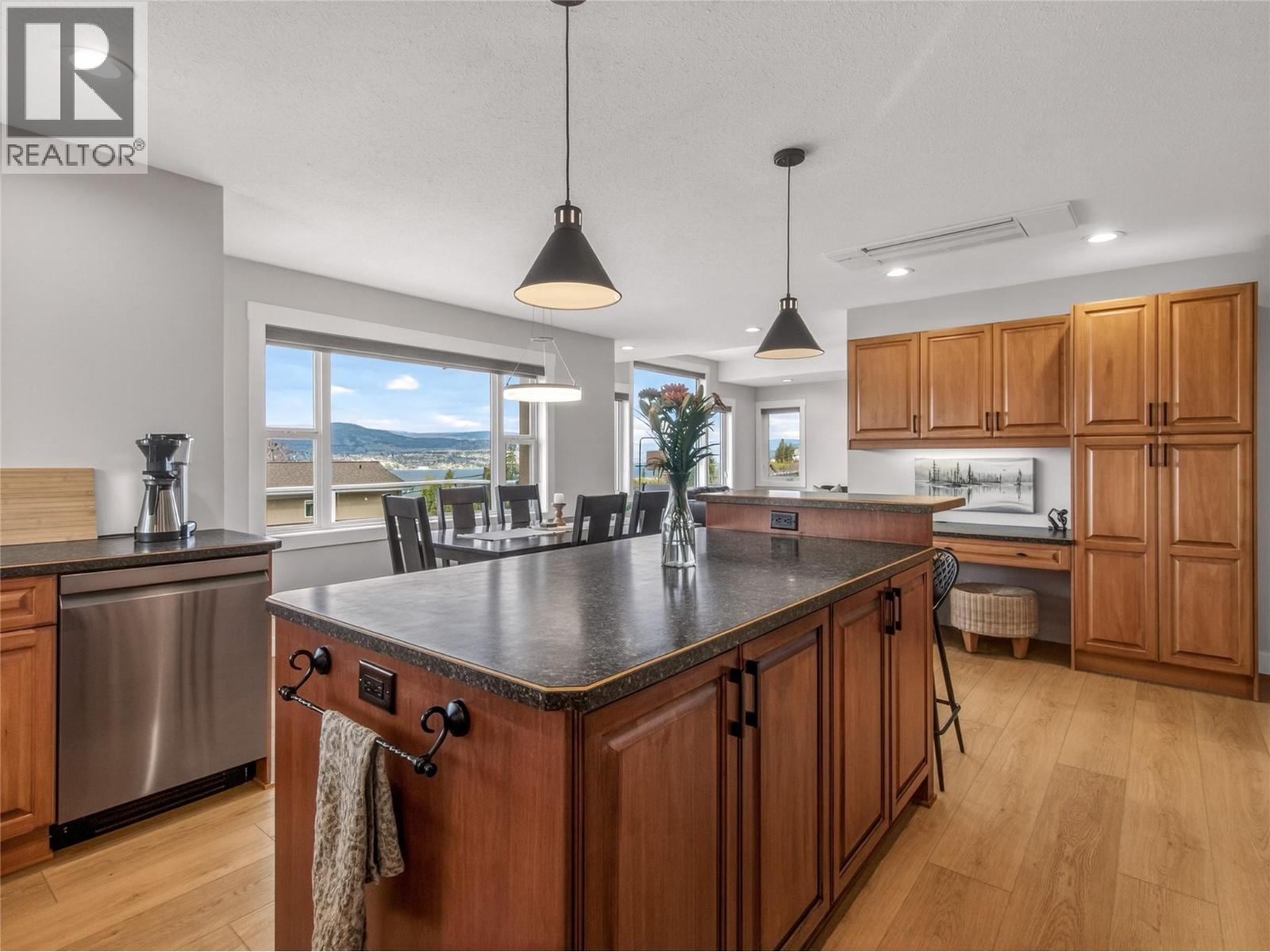 Stunning lake views, a beautiful family sized home with attached garage, + a studio suite above a 2nd detached garage, could all be yours in this dreamy Naramata Bench location! Built in 2005 this gorgeous 4 bedrm, 3 bathrm, 2527sqft home is bright & airy & move in ready. On the ground floor of this home the spacious foyer flows through to the large bright family room, plus there are two well appointed bedrooms & a full bathroom on this walk out level and attached double car garage! Upstairs on the main floor you can take in the views from every room, surrounded by vineyards behind & the lake out front you can enjoy every aspect. The huge kitchen has warm wood cabinets, a center island, extra storage & desk space, and that open plan design perfect for entertaining leading you into the large dining room & beautiful bright living room. The primary bedroom has a lovely ensuite with a large shower, a walk in closet, and access out to the backyard. There is a large 2nd bedroom & a full bathroom on this floor + convenient laundry. This level walks out to the gorgeous backyard complete with patio & pergola and room for a pool! As an added bonus this home has a detached double garage with a non conforming full one bedroom suite above it! The finishes and aesthetic are beautiful throughout this whole home and non conforming suite. Enjoy the lifestyle Naramata offers, a quiet village with strong community and activities, excellent shops and eateries and stunning beaches and wineries. (id:4069)