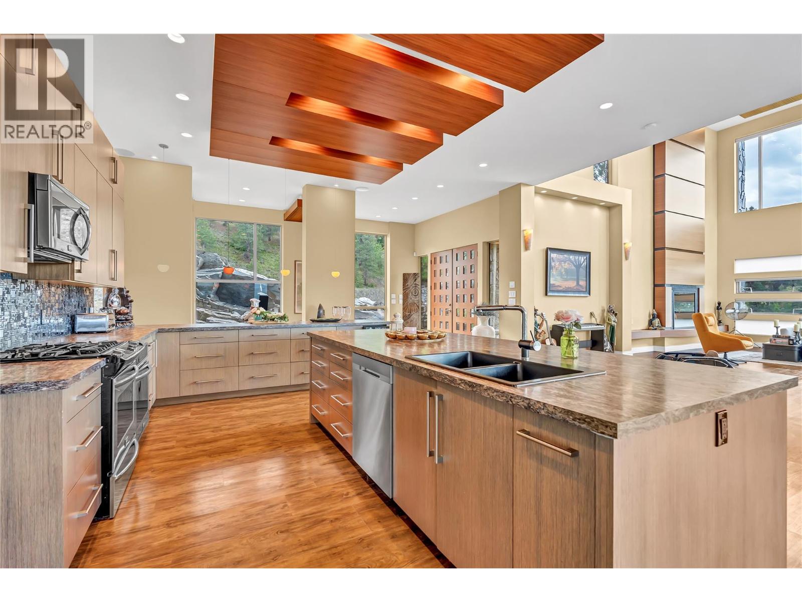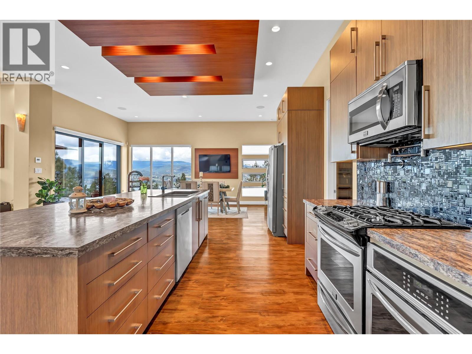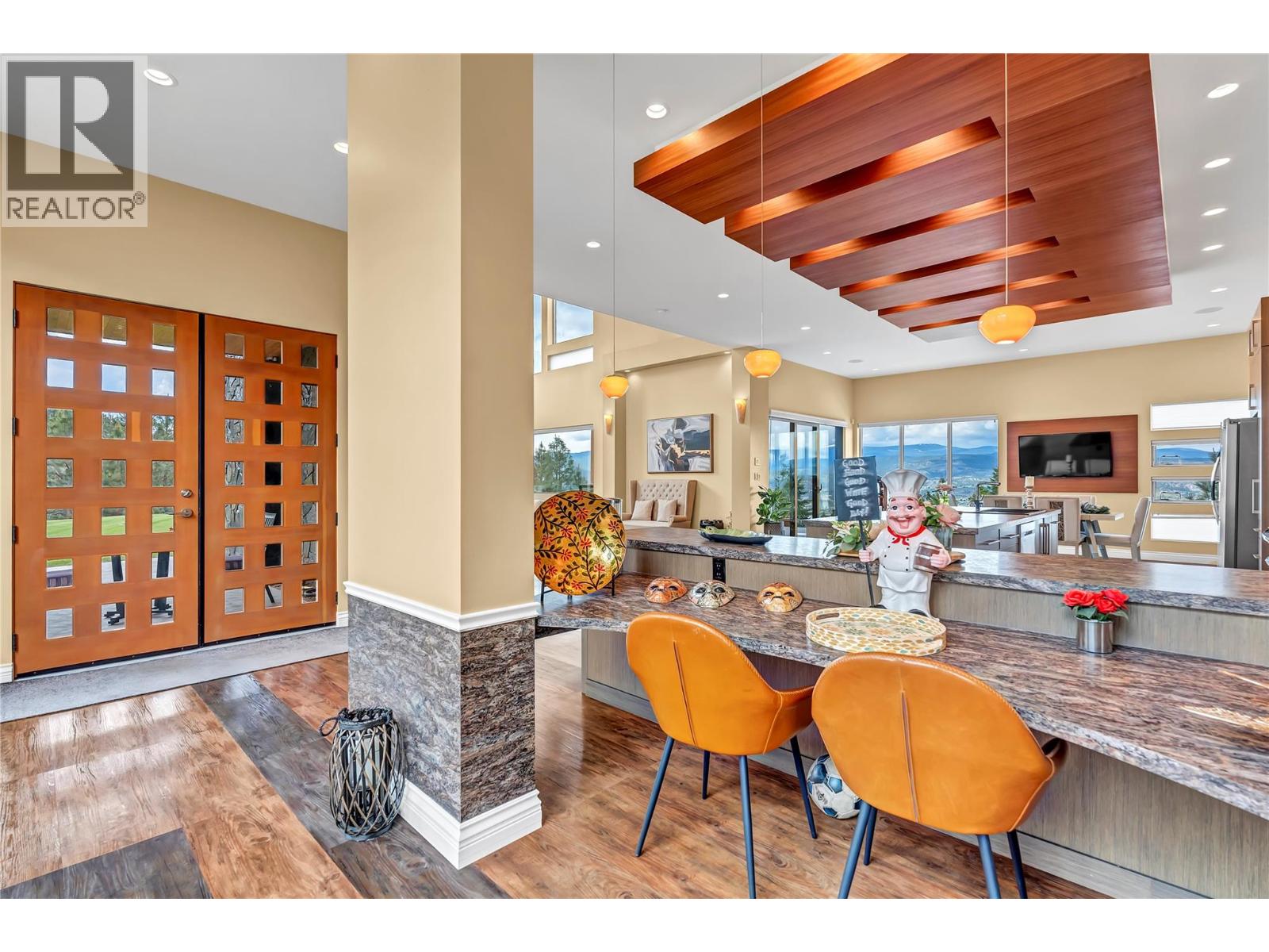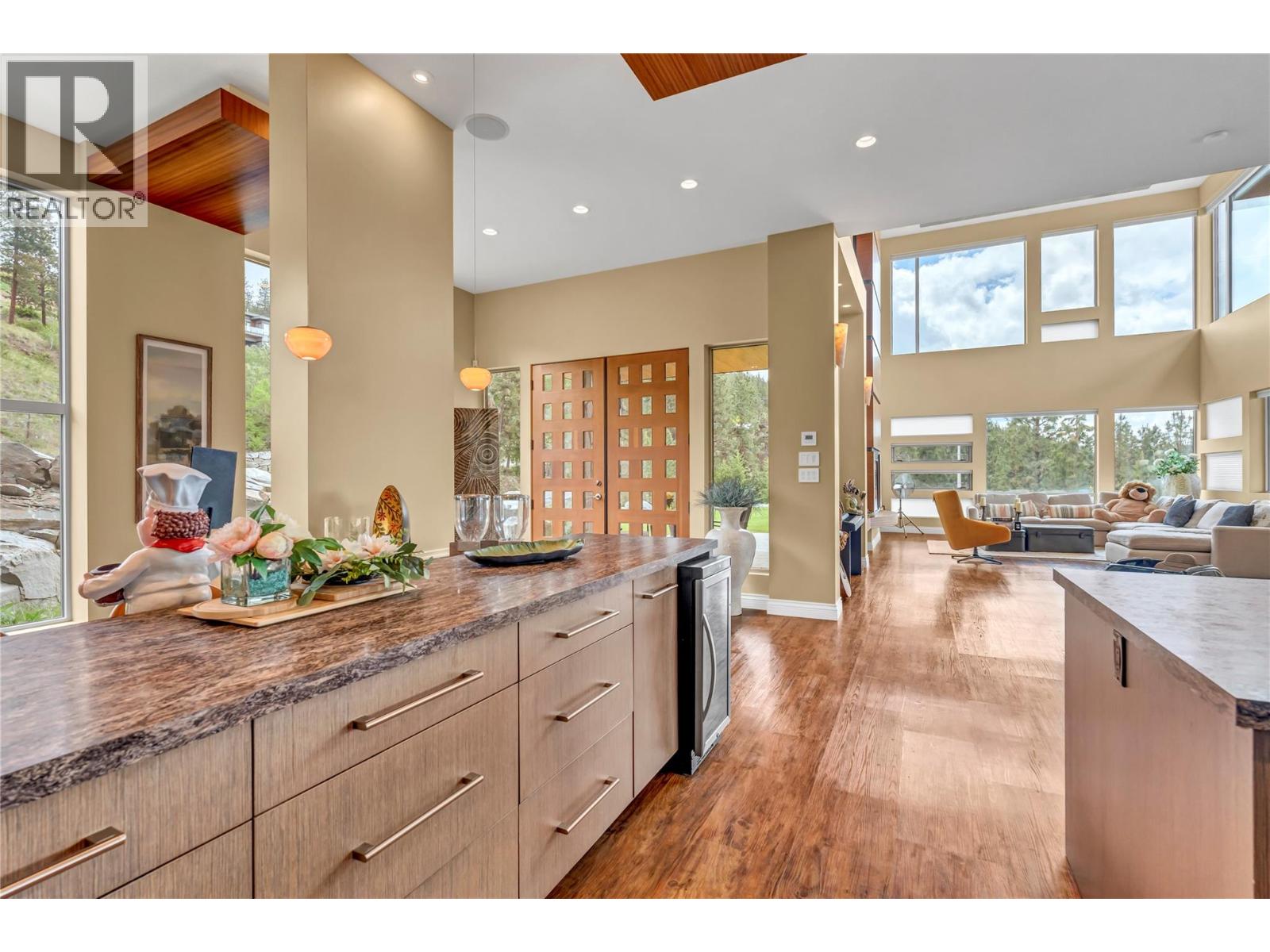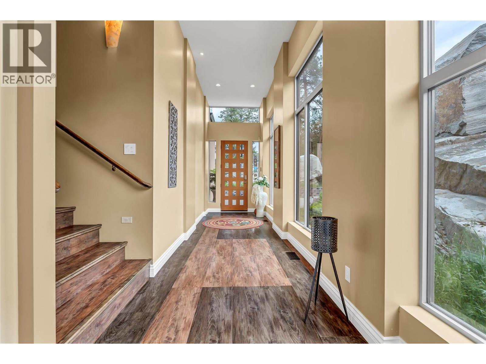 Welcome to Castlerock – A Modern Estate with Unmatched Views and Design Located on the Kettle Valley Rail Trail and surrounded by the award-winning wineries of the Naramata Bench, this exceptional estate offers panoramic views of Okanagan Lake and the surrounding mountains. This thoughtfully designed 5-bedroom, 4.5-bathroom home spans over 4,800 sqft, combining modern architectural elegance with everyday functionality. The open-concept grand room features soaring ceilings, expansive windows, and a gourmet kitchen equipped with high-end appliances and a large walk-in pantry — perfect for entertaining or relaxed family living. Two spacious sundecks — northeast and southwest facing — offer sun or shade throughout the day. Enjoy outdoor living year-round with a heated, chromatically-lit pool, infinity-edge hot tub, and an outdoor fireplace, all positioned to maximize the stunning views. Experience luxury, comfort, and natural beauty in one of the Okanagan’s most desirable locations. (id:4069)